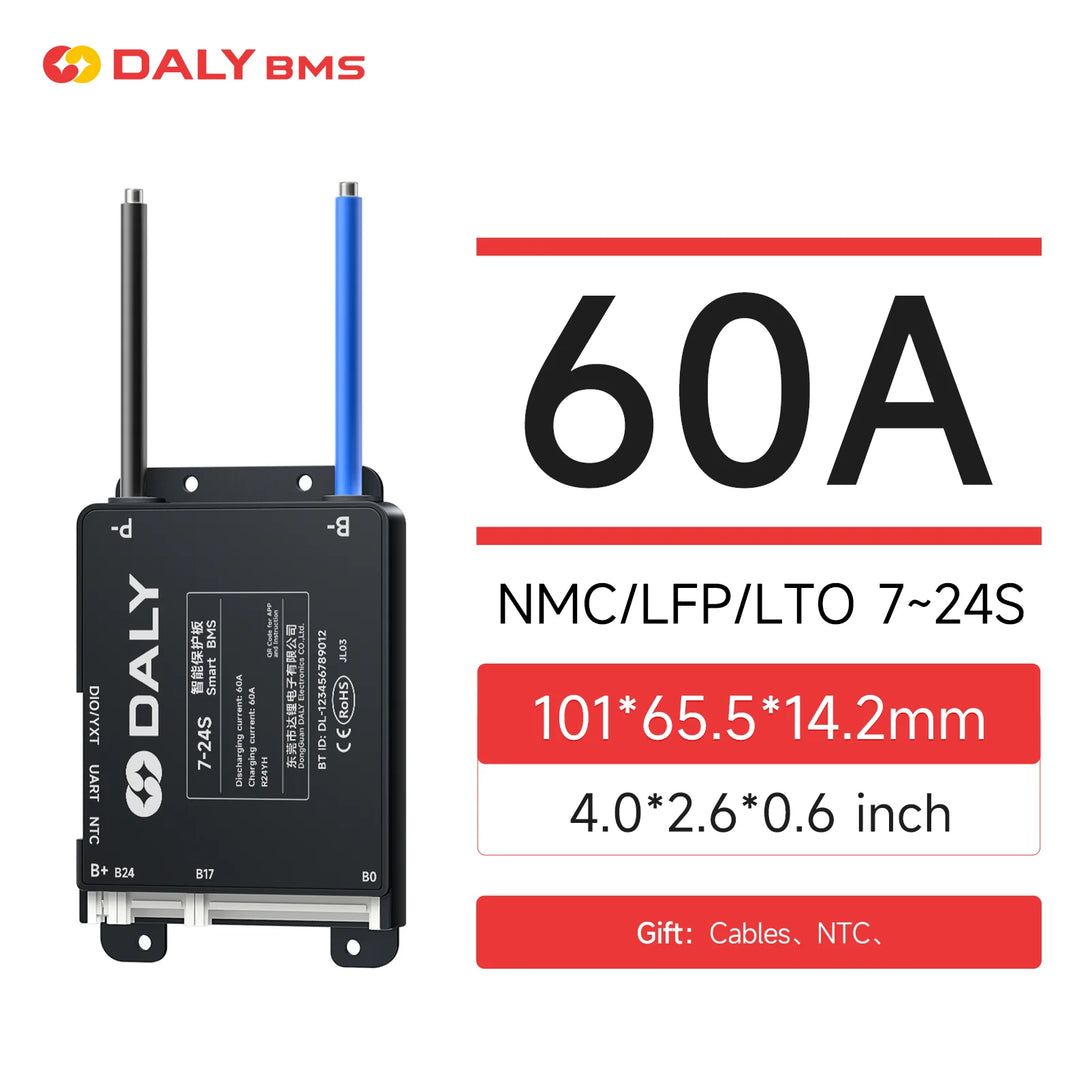 Daly Smart BMS 30A 40A 60A 4S-8S 7S-17S 7S-24S Smart Integrated Bluetooth Surveillance Lithium Battery Lifepo4 Li-Ion LTO