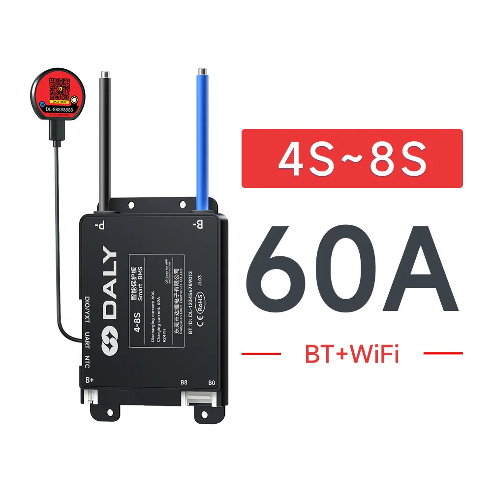 Daly Smart WIFI BMS 4S 7S 8S 13S 14S 16S 17S 20S 24S Built-in Bluetooth 30A 40A 60A 80A 100A 120A 150A 200A Lifepo4 Li-Ion LTO